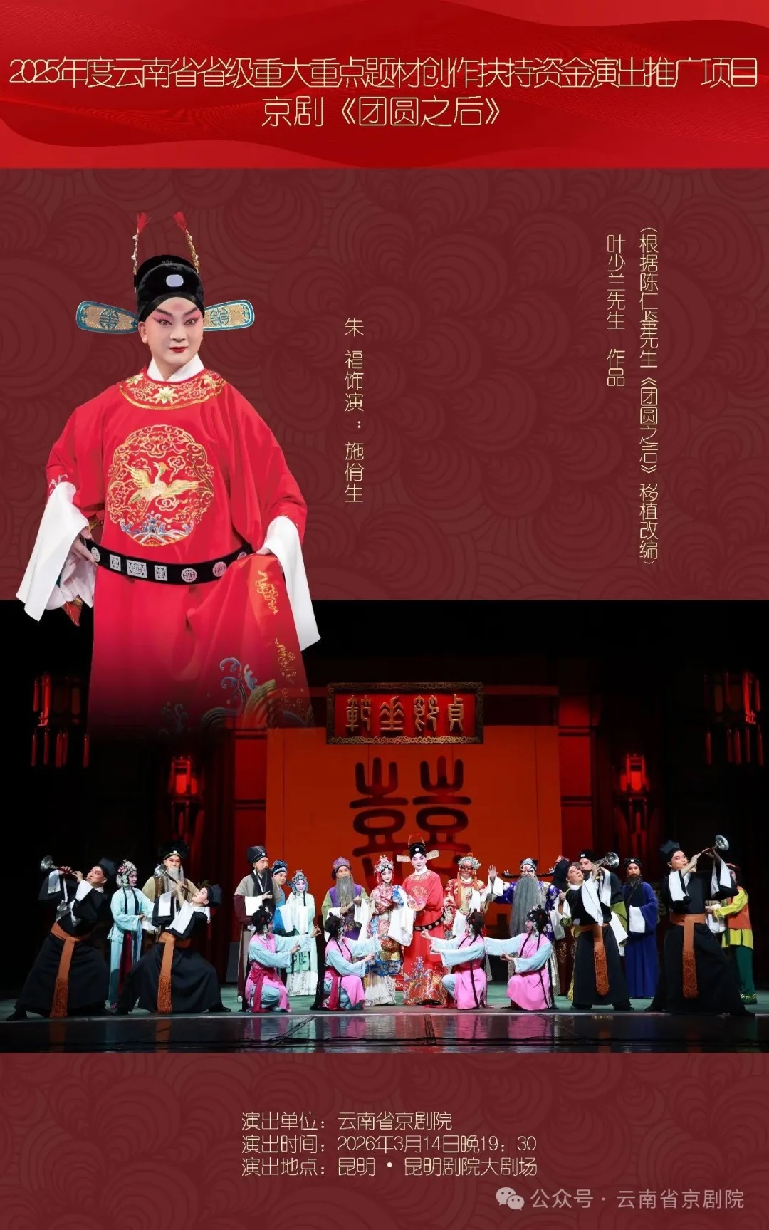 京剧《团圆之后》斩获多项重磅荣誉:曾荣获云南省第十六届新剧目展演表演一等奖、第31届上海白玉兰戏剧表演艺术奖主角奖;先后入选2020中国文联全国中青年文艺领军人才重点扶持项目、国家艺术基金2020年度大型舞台艺术创作资助项目,并连续亮相第九届、第十届中国京剧艺术节。此外,该剧还成功入围第十八届文华剧目奖终评提名,亮相第十四届中国艺术节展演舞台。